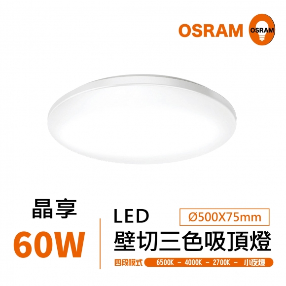 【歐司朗】 OSRAM LED 晶享 60W 壁切三色溫吸頂燈