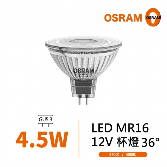 【歐司朗】 OSRAM LED 4.5W MR16 12V 杯燈 36°