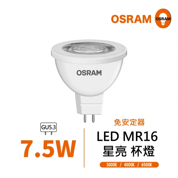 【歐司朗】 OSRAM LED MR16 7.5W 免安定器杯燈